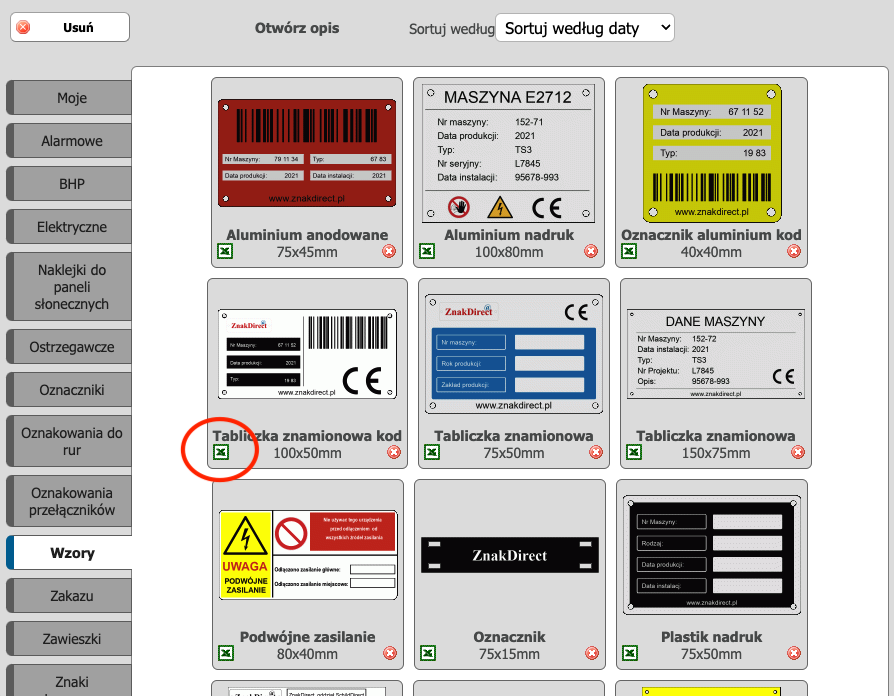 Sprawdź poprawność swoich oznakowań i edytuj je jeśli to konieczne. Zapisz projekt i zamów go jak zwykle. Tabliczki zostaną wysłane jeszcze tego samego dnia, podczas gdy faktura trafi do Twojej skrzynki w okresie do dwóch tygodni.
