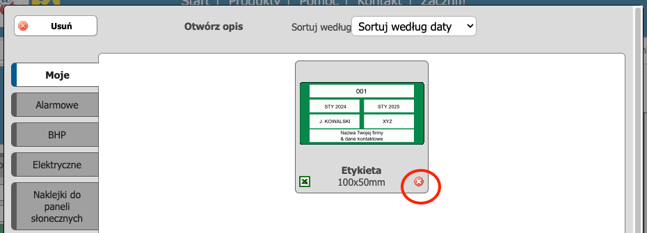 Aby usunąć wzór lub grafikę kliknij na ikonkę z symbolem krzyżyka i potwierdź usunięcie obiektu.